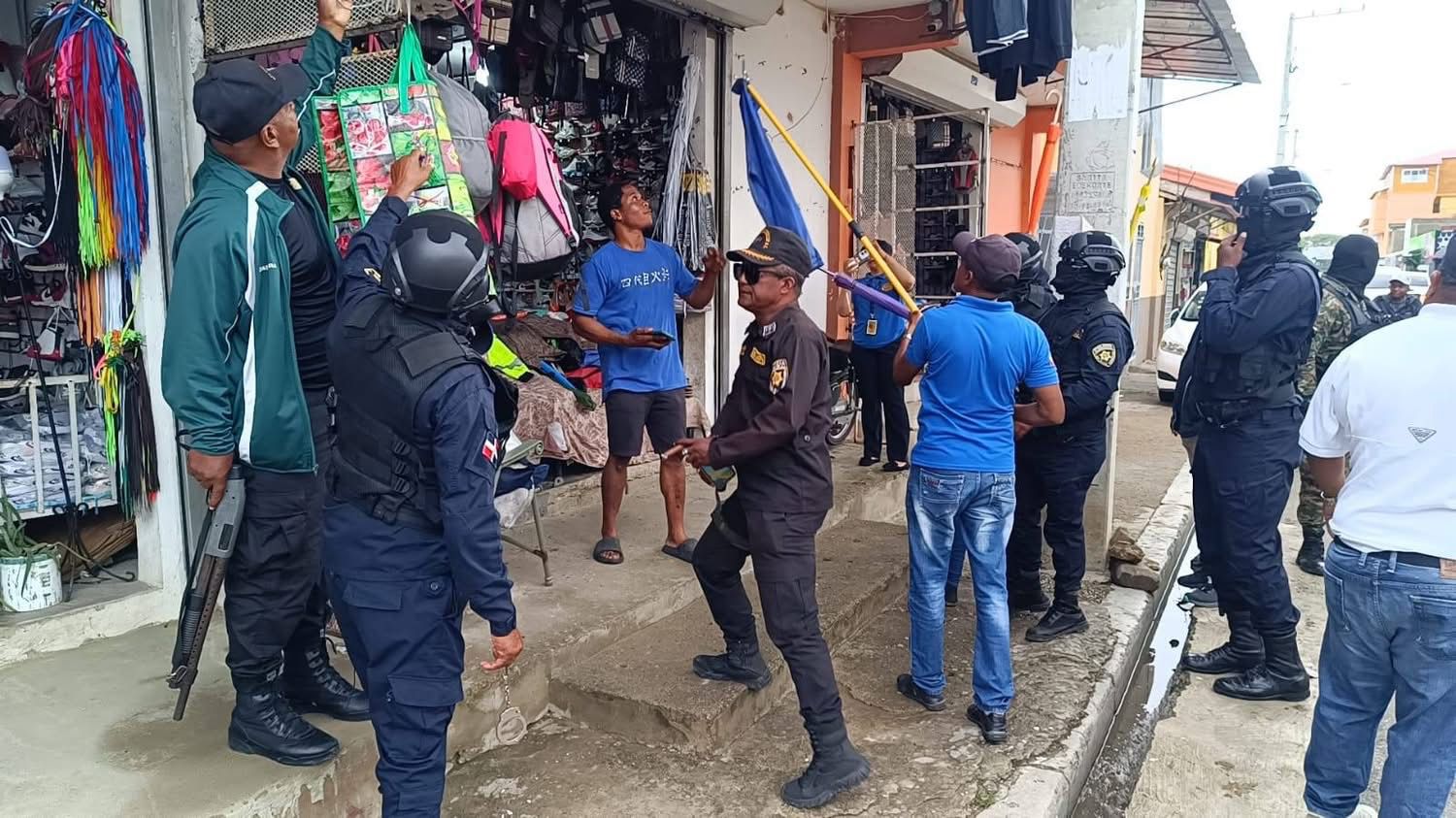 En el operativo participó personal de la Dirección General de Migración, dado que muchos de los comerciantes desalojados son ciudadanos haitianos. Su presencia tuvo como finalidad asegurar el respeto al debido proceso durante las acciones ejecutadas.